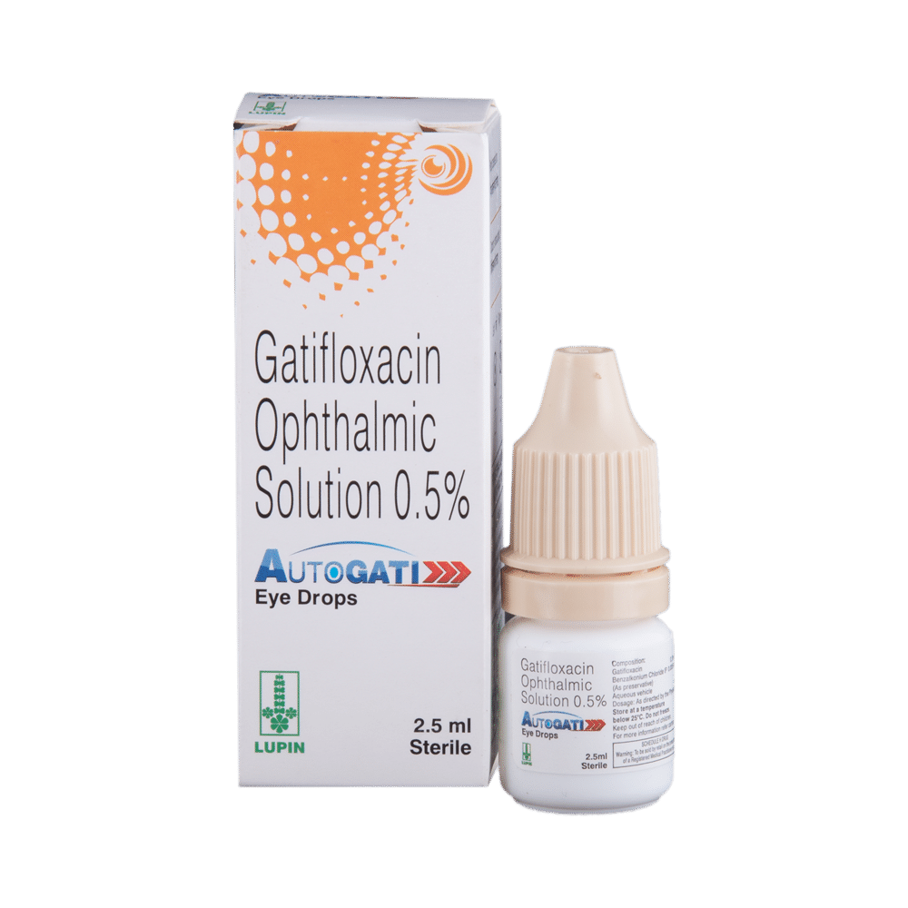 Autogati Eye Drops 2.5ml (Gatifloxacin) is an antibiotic used to treat bacterial infections. It works by killing bacteria that cause infections. Common side effects include nausea, diarrhea, vomiting, headache, and dizziness. Avoid alcohol, driving, and operating machinery until you know how this medication affects you. It is not recommended for children or during pregnancy. Talk to your doctor if you have any questions or concerns about this medication.