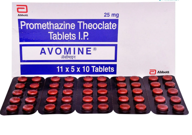 Avomine 25mg Tab (Promethazine) is a medication used to treat a variety of conditions, including nausea, vomiting, allergic reactions, and motion sickness. It works by blocking the action of histamine, a chemical that is released during allergic reactions. Promethazine can cause drowsiness and other side effects, so it is important to avoid driving or operating machinery until you know how it affects you. It is also important to avoid alcohol while taking promethazine. Promethazine is not recommended for pregnant women or children under the age of 2 years. Talk to your doctor if you have any questions about promethazine or if you experience any side effects.