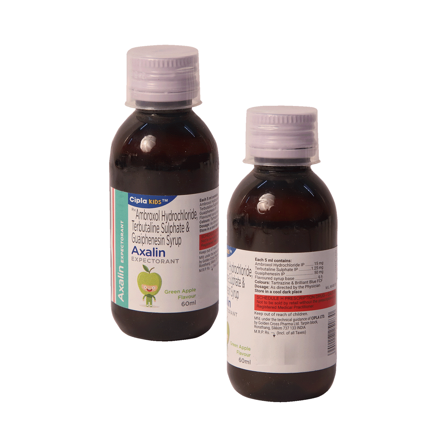 Axalin Expectorant 60ml (Ambroxol + Salbutamol) is a combination medication used for treating respiratory conditions like bronchitis, COPD, and asthma. It contains Ambroxol, which thins mucus, and Salbutamol, which relaxes airway muscles. It is important to follow your doctor's instructions regarding dosage and duration of treatment. Common side effects include nausea, vomiting, dizziness, and headache. Avoid alcohol and operating machinery while taking this medication. Consult your doctor if you are pregnant, breastfeeding, have kidney or liver problems, or have any concerns about taking this medication.