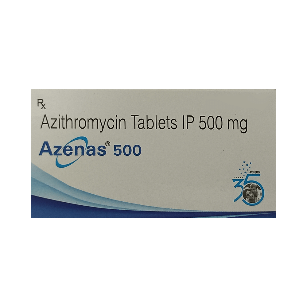 Azenas 500mg Tab (Azithromycin) is an antibiotic used to treat bacterial infections. It works by preventing bacteria from producing essential proteins needed for their survival. It is typically taken once a day, with or without food. Common side effects include diarrhea, nausea, and vomiting. It is important to complete the full course of treatment, even if you start to feel better. If you are pregnant, breastfeeding, or have liver or kidney problems, talk to your doctor before taking azithromycin.