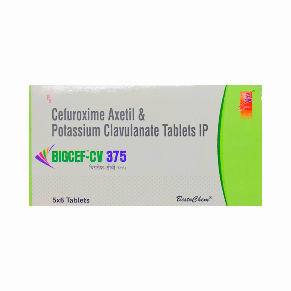 Bigcef Cv 375mg Tab (Cefuroxime + Clavulanic Acid) is a combination antibiotic used to treat various bacterial infections. It's crucial to follow your doctor's prescribed dosage and complete the entire course of treatment. Common side effects include diarrhea and nausea. Inform your doctor about any pre-existing medical conditions, including kidney or liver problems, before starting treatment. If you experience any serious side effects, seek immediate medical attention.