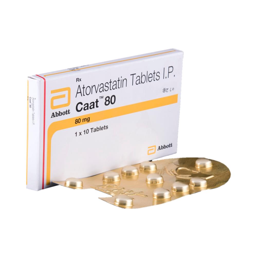 Caat 80mg Tab (Atorvastatin) is a medication used to lower cholesterol levels. It works by blocking the production of cholesterol in the liver. Common side effects include muscle aches and digestive issues. Important safety considerations include avoiding alcohol excess, potential drowsiness, and contraindications during pregnancy and breastfeeding. Always follow your doctor's prescribed dosage and report any unusual symptoms immediately.