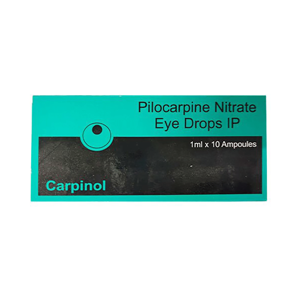 Carpinol Eye Drops 1ml (Pilocarpine) is a medication used to treat dry eye disease, glaucoma, and stimulate sweating for diagnostic purposes. It works by stimulating the parasympathetic nervous system. Common side effects include headache, blurred vision, eye irritation, and excessive sweating. It is important to avoid alcohol consumption while taking pilocarpine, as it can increase the risk of side effects. You should also avoid driving or operating machinery until you know how this medication affects you. If you are pregnant or breastfeeding, consult your doctor before taking pilocarpine. Pilocarpine should be used with caution in children and those with kidney or liver problems. Always follow your doctor's instructions carefully.