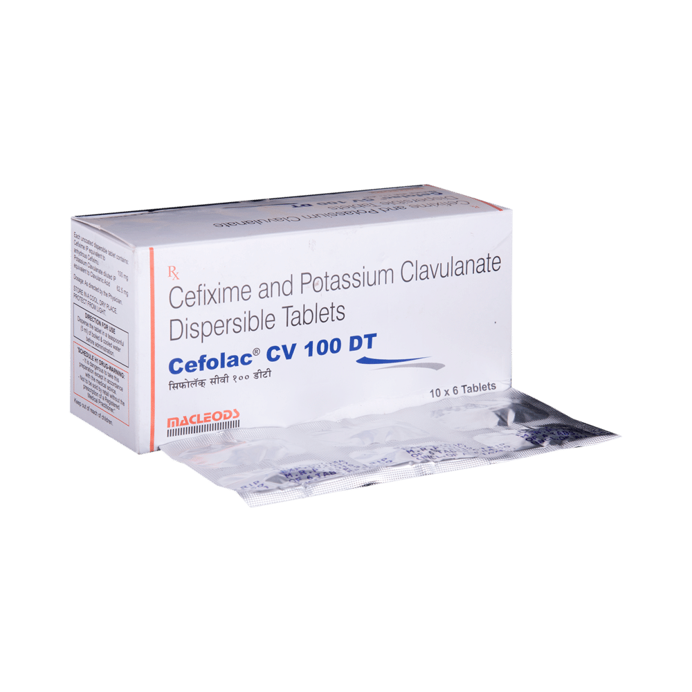 Cefolac Cv Dt 100mg Tab (Cefixime + Clavulanic Acid) is an antibiotic combination used to treat various bacterial infections. It's crucial to follow your doctor's prescribed dosage and duration. Common side effects include diarrhea and nausea. Inform your doctor about any allergies, pre-existing conditions, or medications you're taking. Do not consume alcohol or operate machinery if you experience dizziness or drowsiness. Always complete the entire course of treatment.