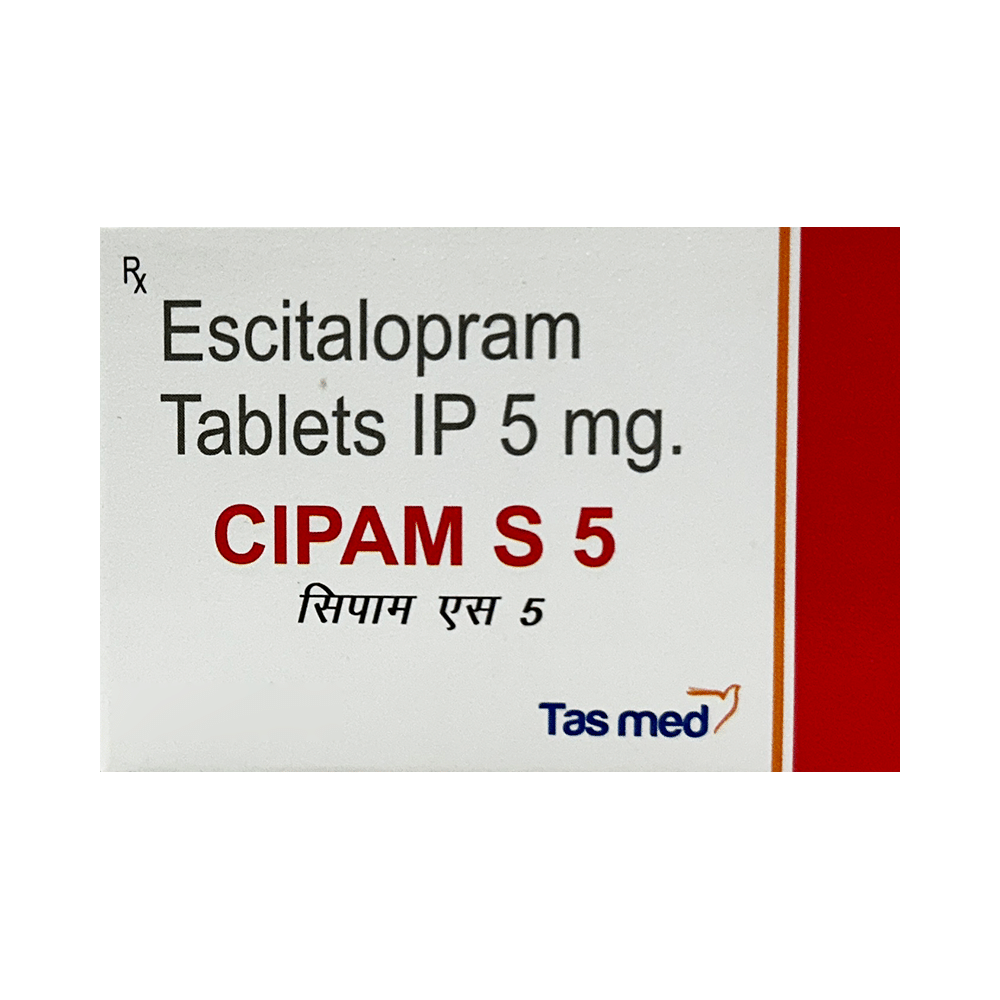 Cipam S 5mg Tab (Escitalopram) is an antidepressant medication used to treat various mental health conditions. It increases serotonin levels in the brain. Dosage is determined by your doctor. Common side effects include nausea, headache, and drowsiness. Avoid alcohol and driving while experiencing drowsiness. Do not stop taking it suddenly. Consult your physician immediately if you experience any concerning side effects.
