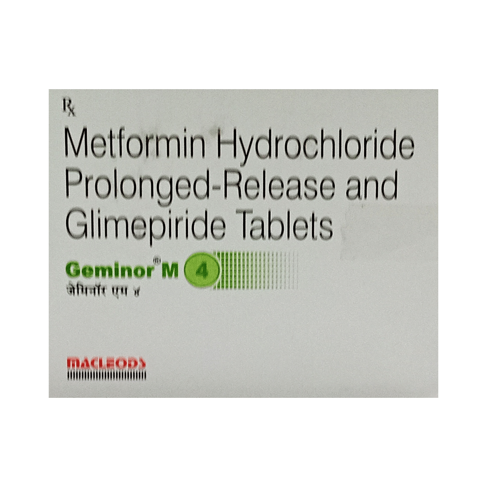 Geminor M 4 Tab (Glimepiride + Metformin) is a combination medication used to control blood sugar levels in adults with type 2 diabetes. It works by stimulating insulin production and reducing glucose production. This medication is taken orally with meals. The dosage is individualized based on your blood sugar levels and overall health. Common side effects include nausea, vomiting, and diarrhea. Serious side effects are rare but can include lactic acidosis and liver problems. Avoid alcohol, monitor for hypoglycemia, and discuss with your doctor if you are pregnant, breastfeeding, or have kidney or liver problems.