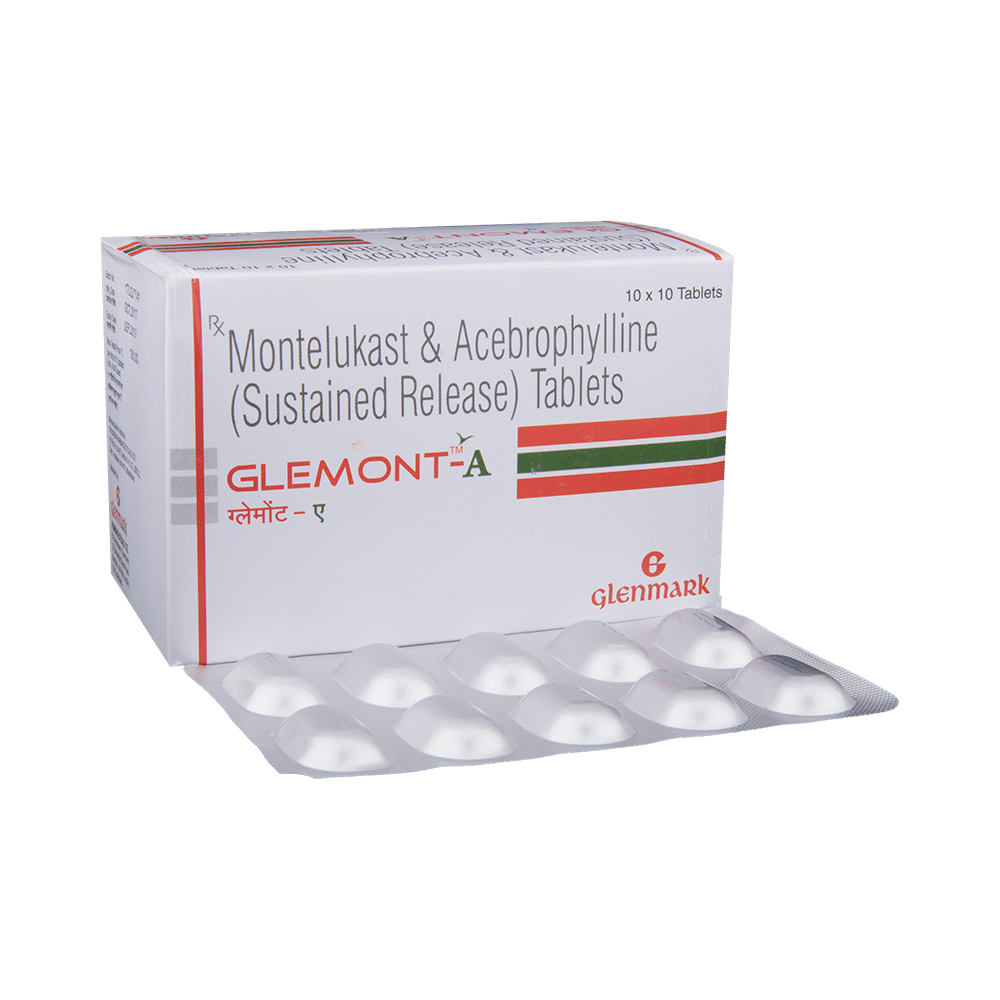 Glemont A Tab (Acebrophylline + Montelukast) combination medication is used to manage asthma. Acebrophylline opens the airways, while Montelukast reduces inflammation. Always follow your doctor's prescription regarding dosage and duration. Inform your doctor about any pre-existing medical conditions or other medications you're taking. Report any side effects immediately. This information is for educational purposes and should not replace professional medical advice.