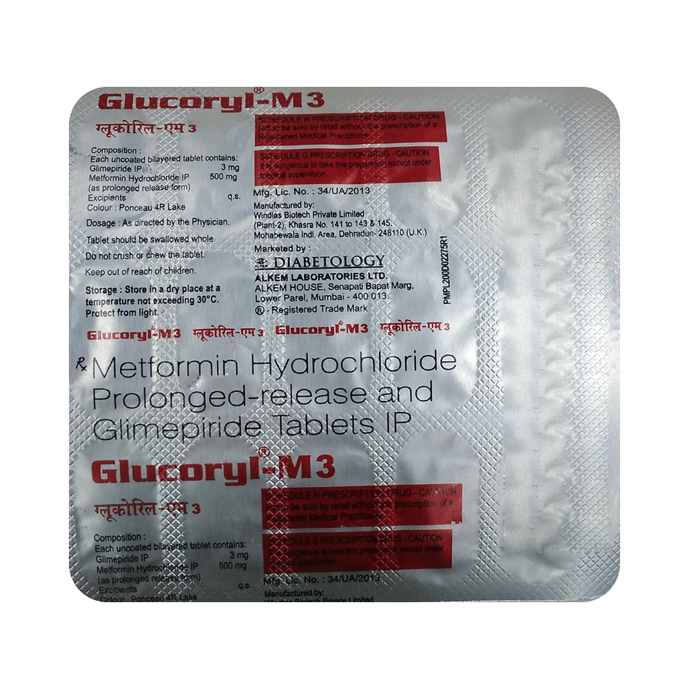 Glucoryl M3 Tab (Glimepiride + Metformin) are medications used to control blood sugar levels in patients with type 2 diabetes. They work by increasing insulin production and reducing glucose production in the liver. This combination is generally well-tolerated, but common side effects include hypoglycemia, gastrointestinal problems, and skin rash. It's crucial to follow your doctor's instructions regarding dosage and to be aware of potential interactions with alcohol and other medications. Regular blood sugar monitoring and close communication with your healthcare provider are essential for safe and effective treatment.