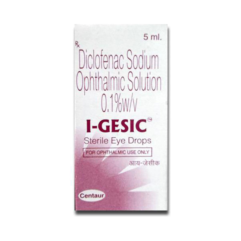 I Gesic Eye Drops 5ml (Diclofenac) is an NSAID used to reduce pain and inflammation. It's crucial to follow your doctor's prescribed dosage and be aware of potential side effects like gastrointestinal problems and cardiovascular risks. Inform your doctor about any pre-existing conditions, especially kidney or liver issues, before starting this medication. Avoid alcohol and driving if experiencing drowsiness. Pregnancy and breastfeeding women should use it only under strict medical supervision.