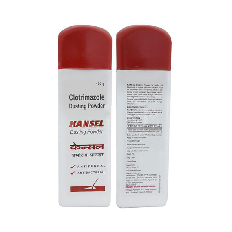 Kansel Dusting Powder 100gm (Clotrimazole) is an effective antifungal medication used to treat various fungal skin and mucosal infections. Always follow your doctor's instructions regarding dosage and duration of treatment. If you experience any side effects, contact your doctor or pharmacist immediately.