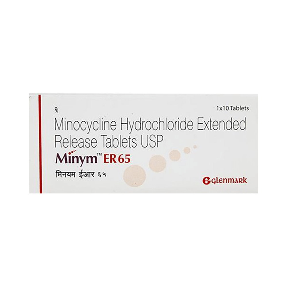 Minym Er 65mg Tab (Minocycline) is a tetracycline antibiotic used to treat various bacterial infections. It works by stopping bacterial growth. Common side effects include nausea, vomiting, and diarrhea. Serious side effects are rare but possible. Always follow your doctor's instructions carefully, and inform them about any pre-existing medical conditions or medications you are taking. Do not take minocycline if you are allergic to tetracyclines.