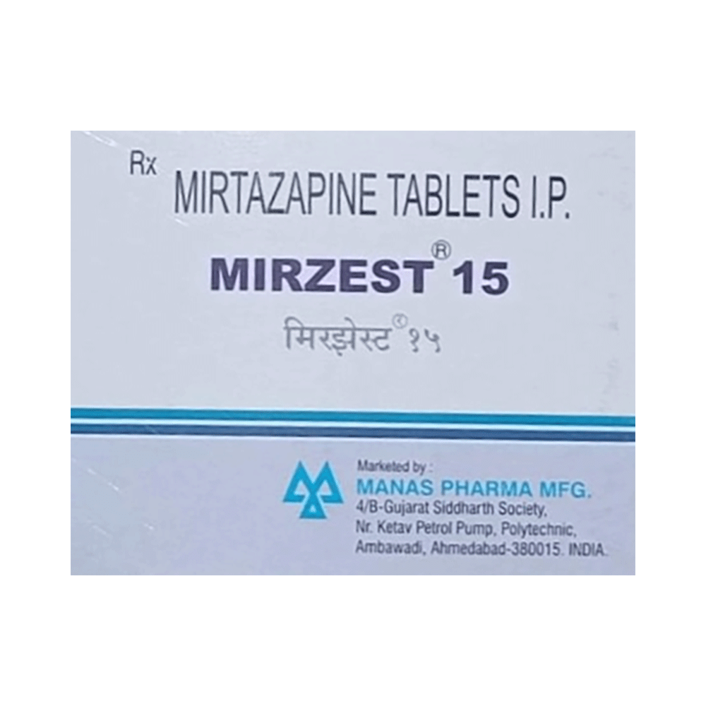 Mirzest 15mg Tab (Mirtazapine) is an antidepressant used to treat major depressive disorder and depressive symptoms in certain other conditions. It works by increasing the release of certain neurotransmitters in the brain. Common side effects include drowsiness, increased appetite, and dry mouth. It's crucial to follow your doctor's instructions regarding dosage and to avoid alcohol and operating machinery while taking this medication. Consult your doctor about potential interactions with other medications and your overall health before starting treatment. This is not exhaustive; consult your healthcare provider for complete information.