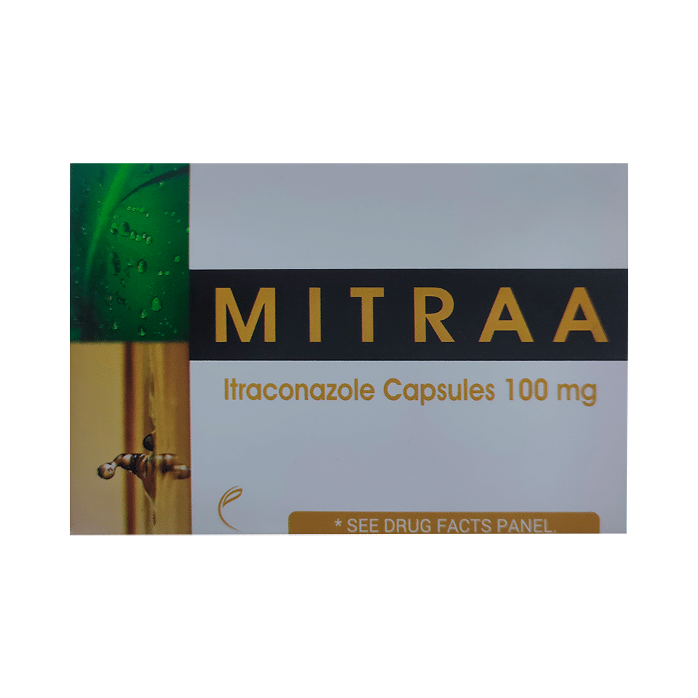 Mitraa 100mg Cap (Itraconazole) is an antifungal medication used to treat various fungal infections. It works by interfering with the growth of fungi. Dosage, potential side effects, and safety considerations vary depending on factors like the infection, patient's health, and other medications. Always consult your doctor for proper diagnosis, dosage, and to discuss any potential risks before taking itraconazole.