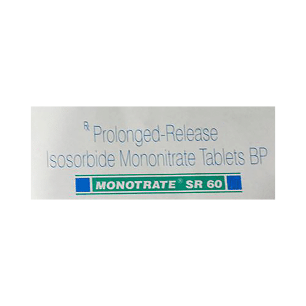 Monotrate Sr 60mg Tab (Isosorbide Mononitrate) is a medication used to treat and prevent chest pain caused by coronary artery disease. It works by relaxing blood vessels, reducing the workload on the heart and improving blood flow. Common side effects include headache, dizziness, and lightheadedness. It's essential to avoid alcohol while taking this medication and to be careful while driving or operating machinery. If you are pregnant, breastfeeding, or have kidney or liver problems, talk to your doctor before taking isosorbide mononitrate.