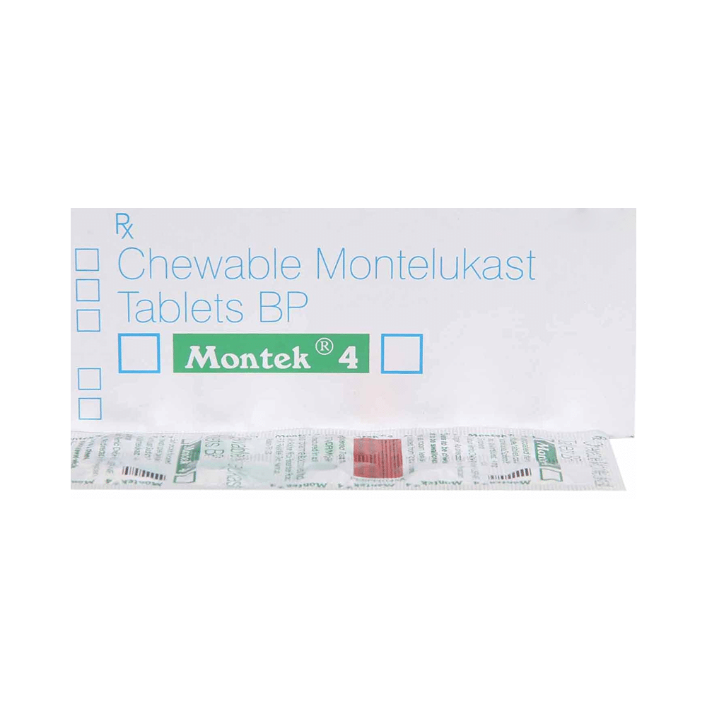 Montek 4mg Tab (Montelukast) is a medication used to prevent and treat asthma and allergies. It works by blocking the action of inflammatory substances. Common side effects are mild, but serious side effects are possible. Always follow your doctor's instructions for dosage and report any concerning side effects immediately. Consult your doctor about interactions with other medications and before taking Montelukast during pregnancy, breastfeeding or if you have liver or kidney issues.