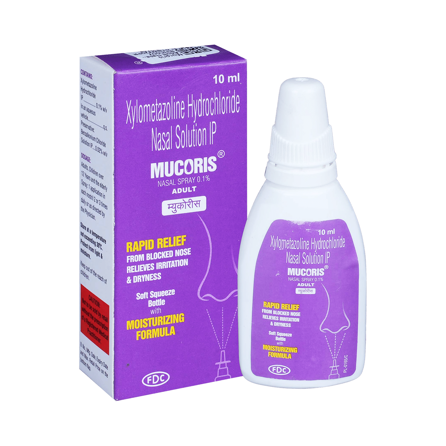 Mucoris Adult Spray 10ml (Xylometazoline) is a nasal decongestant used for temporary relief of nasal congestion. It works by constricting blood vessels in the nose. Follow dosage instructions carefully and be aware of potential side effects like nasal dryness and irritation. Consult your doctor if you have any concerns or pre-existing conditions.