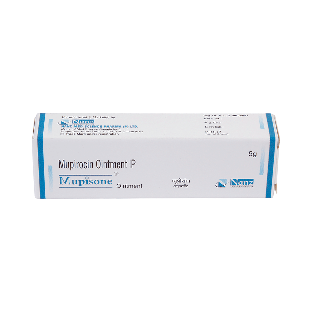 Mupisone Oint 5gm (Mupirocin) is a topical antibiotic used to treat bacterial skin infections like impetigo and acne. It works by stopping bacteria from producing essential proteins needed for growth. Apply a thin layer to the affected area 2-3 times daily for 5-10 days. Common side effects include burning, stinging, and dryness. It's usually safe for children, but it's important to consult a healthcare professional for personalized instructions and to address any concerns. Discuss its use during pregnancy and breastfeeding with your doctor.