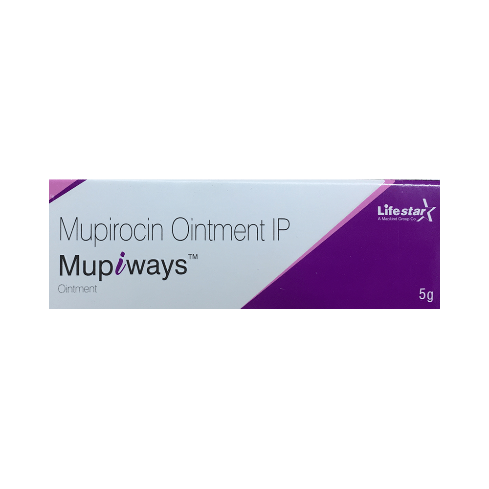 Mupiways Oint 5gm (Mupirocin) is a topical antibiotic used to treat bacterial skin infections like impetigo and acne. It works by stopping bacteria from producing essential proteins needed for growth. Apply a thin layer to the affected area 2-3 times daily for 5-10 days. Common side effects include burning, stinging, and dryness. It's usually safe for children, but it's important to consult a healthcare professional for personalized instructions and to address any concerns. Discuss its use during pregnancy and breastfeeding with your doctor.