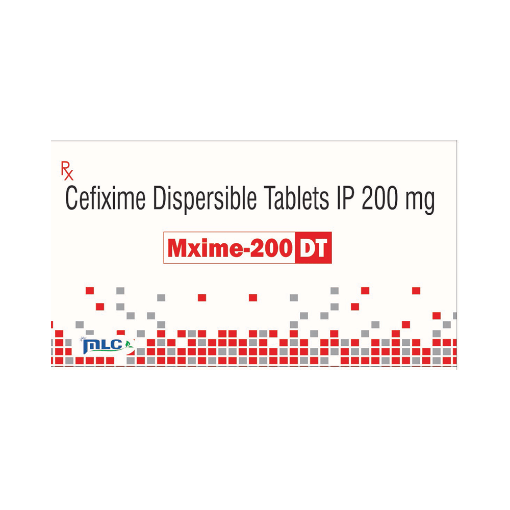 Mxime 200 Dt Tablet (Cefixime) is an antibiotic used to treat various bacterial infections. It works by weakening the bacterial cell wall, causing the bacteria to die. Cefixime is usually taken by mouth, and the dosage depends on the type of infection and the patient's age and weight. Common side effects include diarrhea, nausea, vomiting, and stomach pain. It's important to complete the full course of treatment, even if you start to feel better. Consult your doctor if you have any concerns or questions about cefixime.