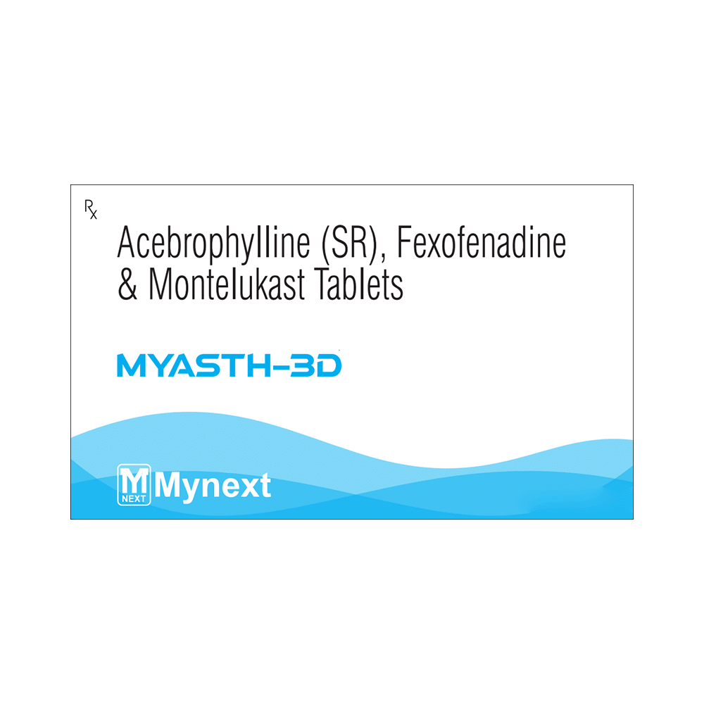 This medication is a combination of three active ingredients: acebrophylline, fexofenadine, and montelukast. It is used to relieve allergy symptoms, manage asthma, and prevent asthma attacks. This medication works by relaxing airway muscles, blocking histamine, and inhibiting leukotrienes. Common side effects include headache, drowsiness, and dry mouth. It's important to store this medication at room temperature, away from light and moisture. Always take this medication as directed by your doctor or pharmacist. Inform your doctor about any existing medical conditions, allergies, or medications you are currently taking. This medication may not be suitable for pregnant or breastfeeding women, children under 12, or people with severe kidney or liver disease. Consult your doctor if you have any questions or concerns about this medication.