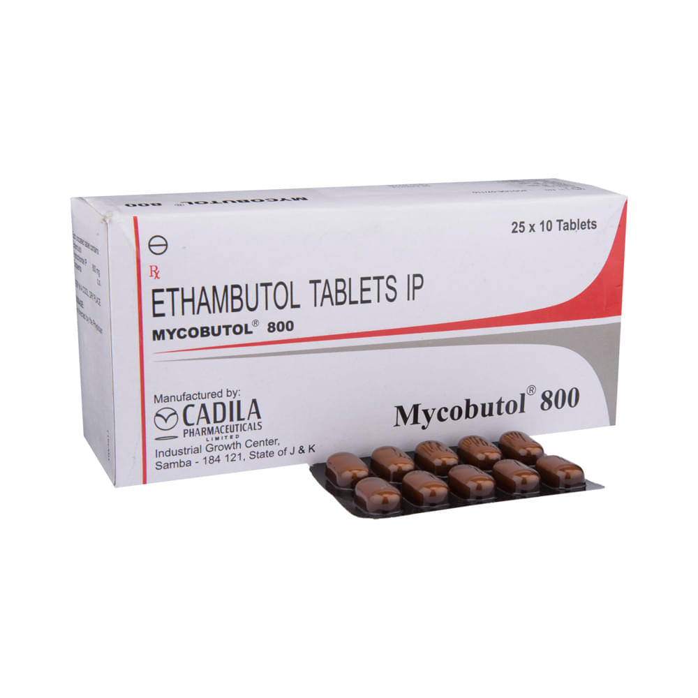 Mycobutol 800mg Tab (Ethambutol) is an antibiotic used to treat tuberculosis (TB). It works by preventing the growth of the bacteria that causes TB. It is typically taken by mouth once a day, with or without food. Common side effects include vision problems, headache, nausea, and vomiting. It is important to avoid alcohol while taking ethambutol and to be careful driving or operating machinery. If you have kidney or liver problems, your doctor may need to adjust your dose. Ethambutol can harm an unborn baby and is not recommended for use during pregnancy or while breastfeeding.