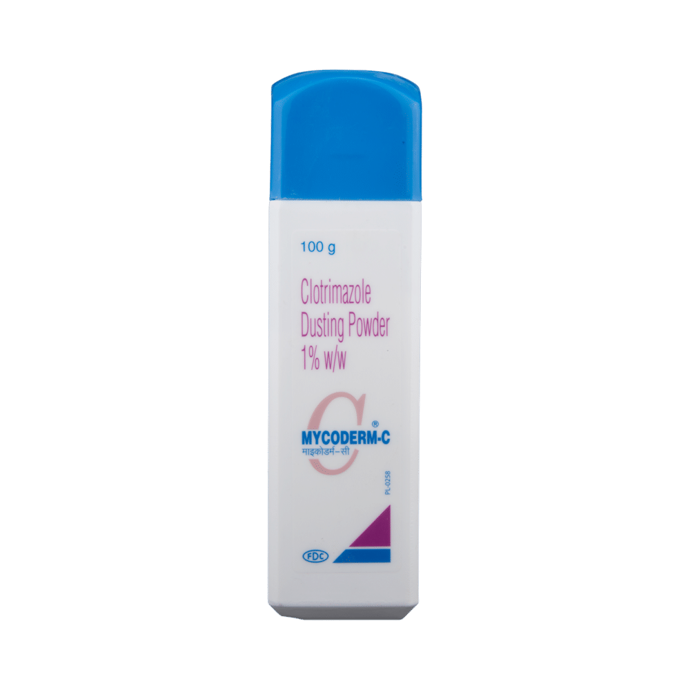 Mycoderm C Powder 75gm (Clotrimazole) is an effective antifungal medication used to treat various fungal skin and mucosal infections. Always follow your doctor's instructions regarding dosage and duration of treatment. If you experience any side effects, contact your doctor or pharmacist immediately.