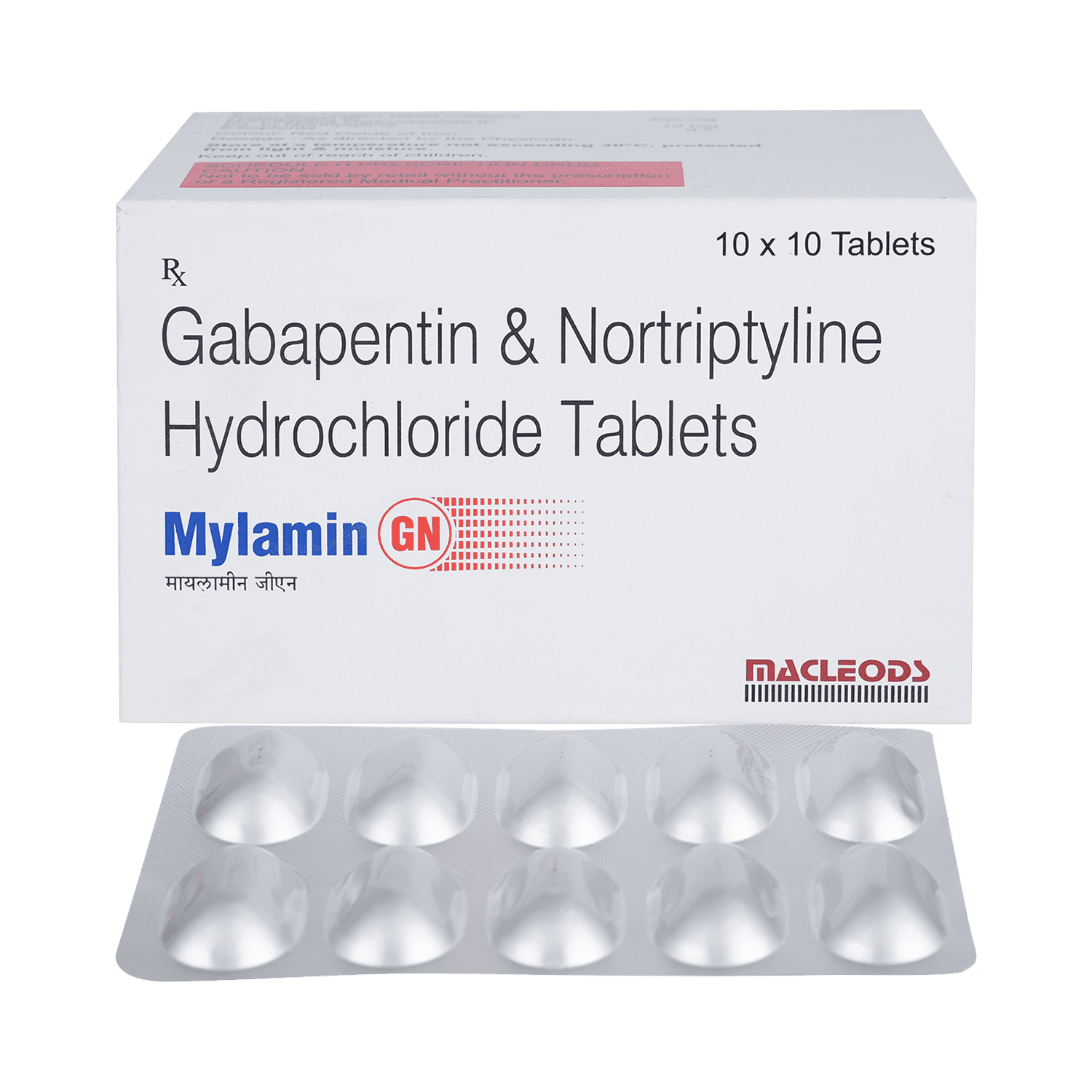 Mylamin Gn Tab (Gabapentin + Nortriptyline) are combined to treat chronic nerve pain and sometimes depression. This combination is not suitable for everyone. It is essential to follow your doctor's instructions on dosage, potential interactions with other medications, and potential side effects. Always inform your physician about your medical history, including kidney or liver problems, before starting this medication.