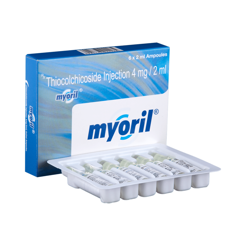 Myoril 4mg Inj 2ml (Thiocolchicoside) is a muscle relaxant prescribed to alleviate pain and muscle spasms. It works by reducing the transmission of pain signals in the nervous system. Common side effects include dizziness, headache, and drowsiness. Avoid alcohol consumption while taking this medication, and use caution while driving or operating machinery. Pregnant and breastfeeding women should consult with their doctor before taking this medication. Dosage and frequency of administration are determined by your doctor based on your individual needs.