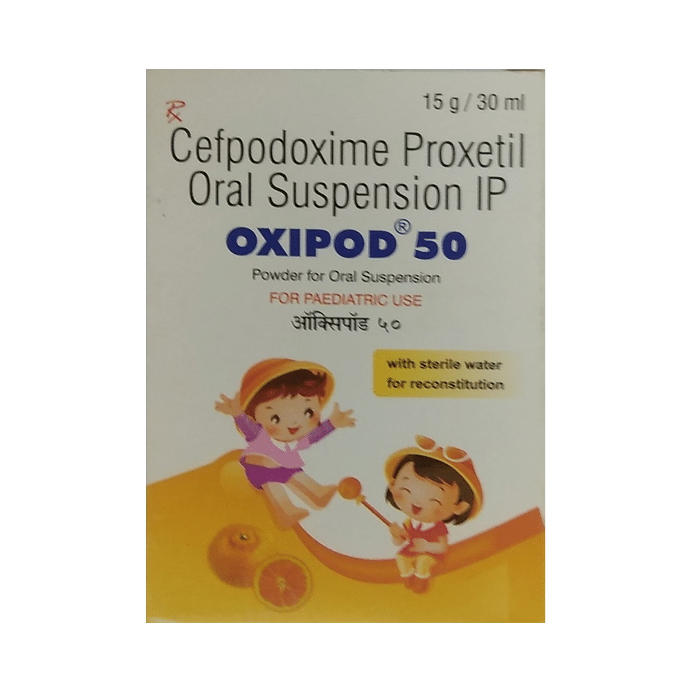 Oxipod 50mg Syp 30ml (Cefpodoxime) is an antibiotic used to treat various bacterial infections. It works by killing bacteria that cause infections. It is usually taken by mouth, with or without food. Common side effects include diarrhea, nausea, vomiting, stomach pain, headache, dizziness, and rash. If you have any questions or concerns, talk to your doctor.