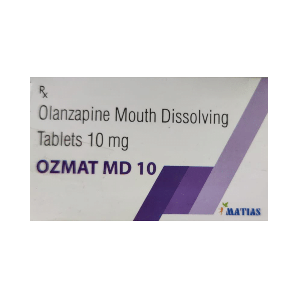 Ozmat Md 10 Tablet (Olanzapine) is a prescription medication used to treat schizophrenia and bipolar disorder. It works by affecting brain chemicals. Common side effects include weight gain, drowsiness, and dizziness. It's crucial to follow your doctor's instructions carefully regarding dosage and to report any concerning side effects immediately. Avoid alcohol and operating machinery while on this medication, and consult your doctor about its use during pregnancy, breastfeeding, or if you have kidney or liver problems.