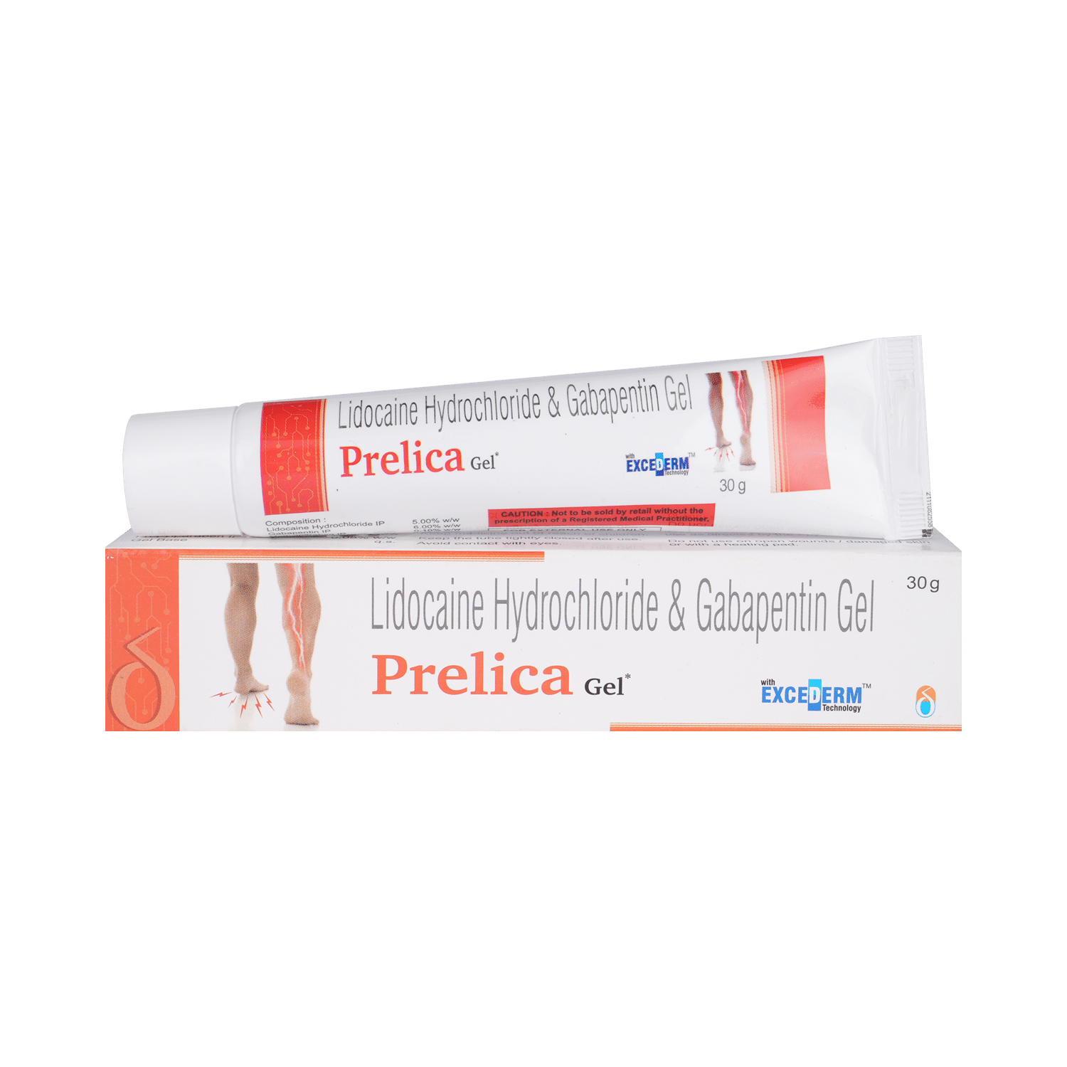 Prelica Gel 30gm (Gabapentin + Lidocaine) cream is a topical medication used to treat nerve pain in adults. It contains gabapentin, an anticonvulsant that reduces nerve pain, and lidocaine, a local anesthetic that numbs the affected area. Apply the cream to the affected area as directed by your doctor. Avoid alcohol and driving until you know how this medication affects you. If you are pregnant or breastfeeding, have kidney or liver problems, or have any other medical conditions, talk to your doctor before using this medication.