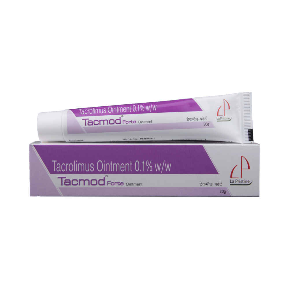Tacmod Forte Oint 10gm (Tacrolimus) is an immunosuppressant used to prevent organ rejection after transplantation and treat severe eczema. It works by suppressing the immune system. Dosage is individualized and requires close medical supervision due to potential side effects, including kidney damage, high blood pressure, and infections. Consult your doctor for detailed information and guidance on safe use.