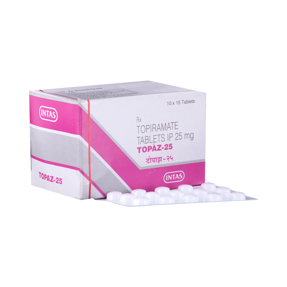 Topaz 25mg Tab (Topiramate) is a prescription medication used to treat epilepsy and migraine. It works by affecting nerve signals in the brain. Common side effects include drowsiness, dizziness, and nausea. It's crucial to follow your doctor's instructions carefully regarding dosage and potential interactions with other medications or alcohol. Regular medical check-ups are essential to monitor for side effects and ensure the medication's effectiveness and safety.