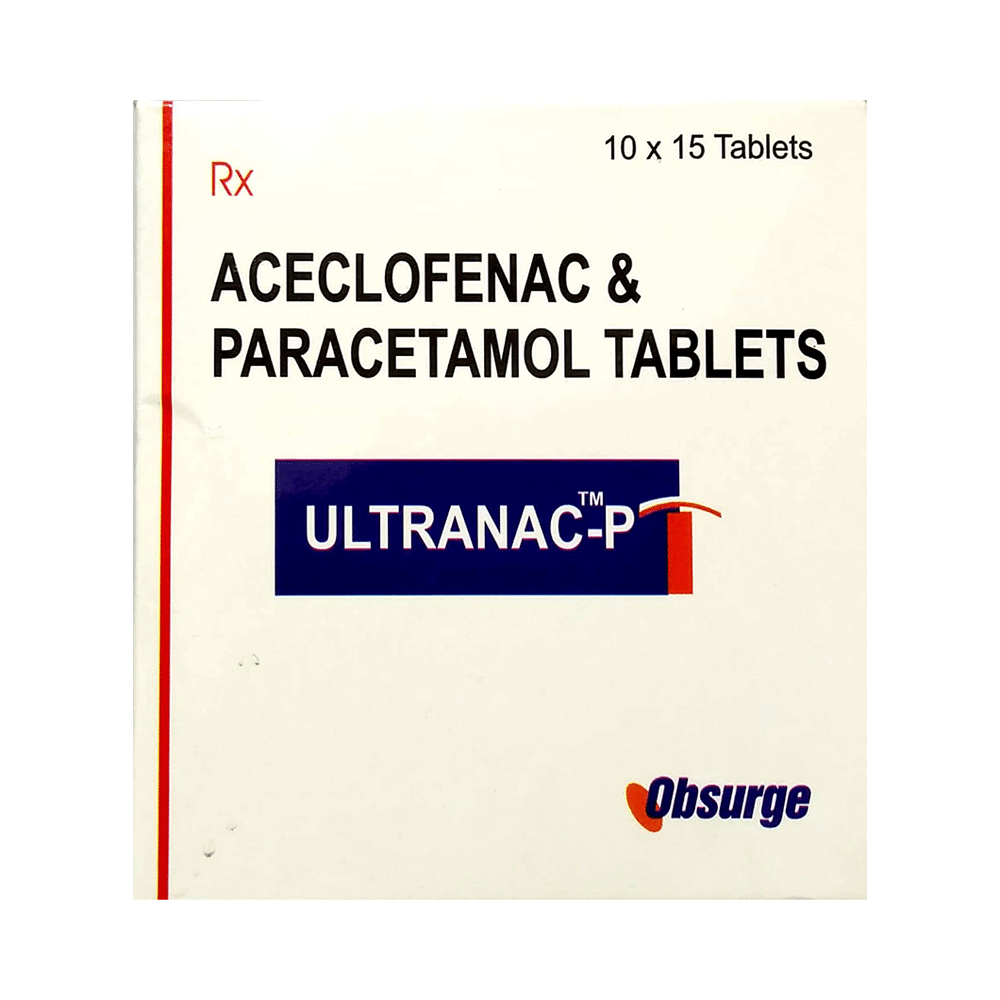 Ultranac P Tab (Aceclofenac + Paracetamol) is a combination medicine used to relieve mild to moderate pain and reduce fever. It works by reducing hormones that cause pain and swelling and by blocking pain signals in the brain. Common side effects include stomach upset, headache, and dizziness. This medicine is not recommended for pregnant women, breastfeeding mothers, and children under 12 unless advised by a doctor. If you have any kidney or liver problems, talk to your doctor before taking this medication. Always follow your doctor's instructions and take the medicine exactly as prescribed.