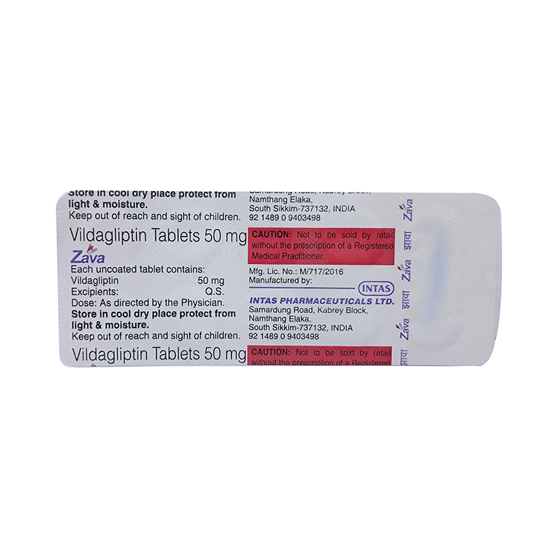 Zava 50mg Tab (Vildagliptin) is a medication used to improve blood sugar control in adults with type 2 diabetes. It works by increasing incretin hormones that help regulate blood sugar. Common side effects include headache, nausea, and upper respiratory infections. It's crucial to follow your doctor's prescribed dosage and inform them about any pre-existing conditions, especially kidney or liver disease, before starting treatment.